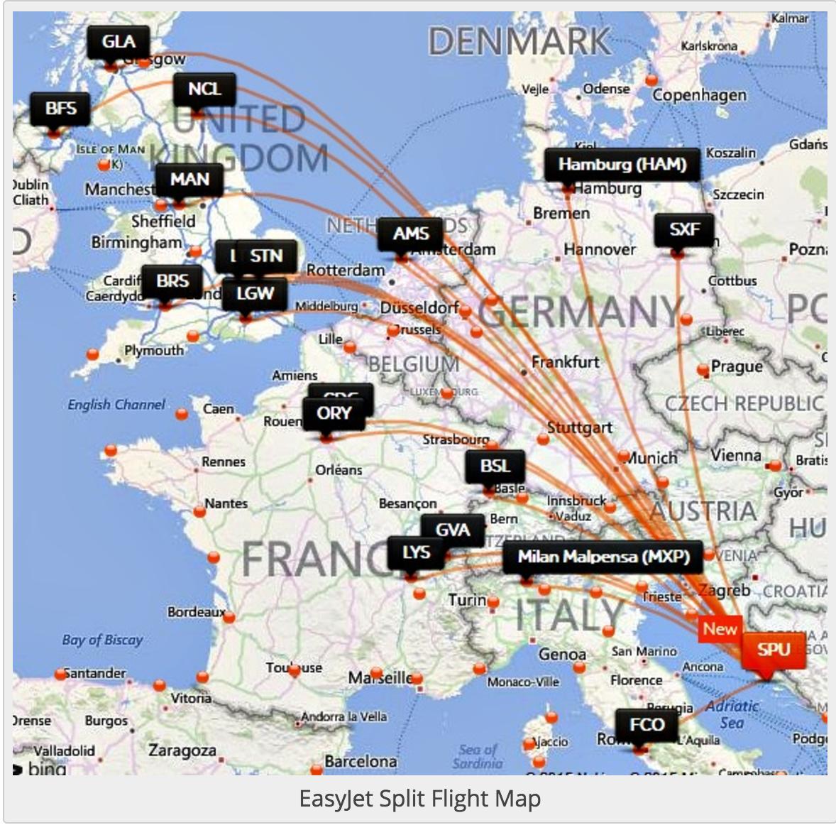 Trasa linii lotniczych Chorwacji na mapie